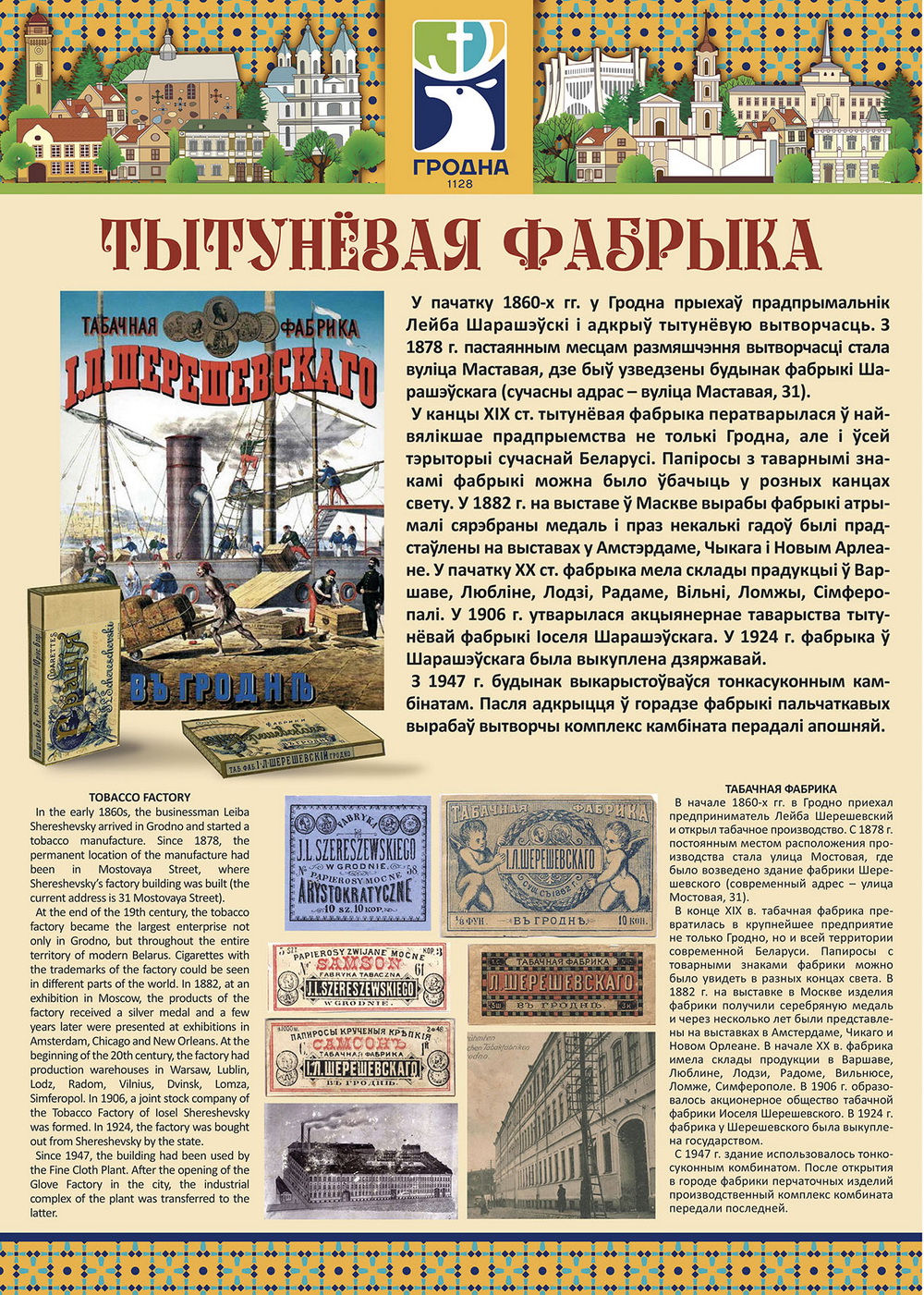 На данном маршруте можно не только узнать информацию о фабриках, действующих раньше на территории г. Гродно, но и посмотреть, как здания, в которых располагались фабрики, выглядят на сегодняшний день.