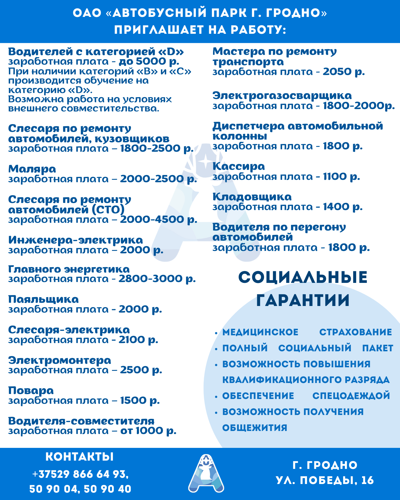 Ознакомиться ПОЛНЫМ ПЕРЕЧНЕМ ВАКАНСИЙ по г.Гродно, в том числе и по всей Республики Беларусь