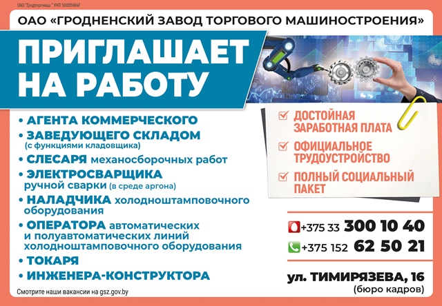 Ознакомиться ПОЛНЫМ ПЕРЕЧНЕМ ВАКАНСИЙ по г.Гродно, в том числе и по всей Республики Беларусь